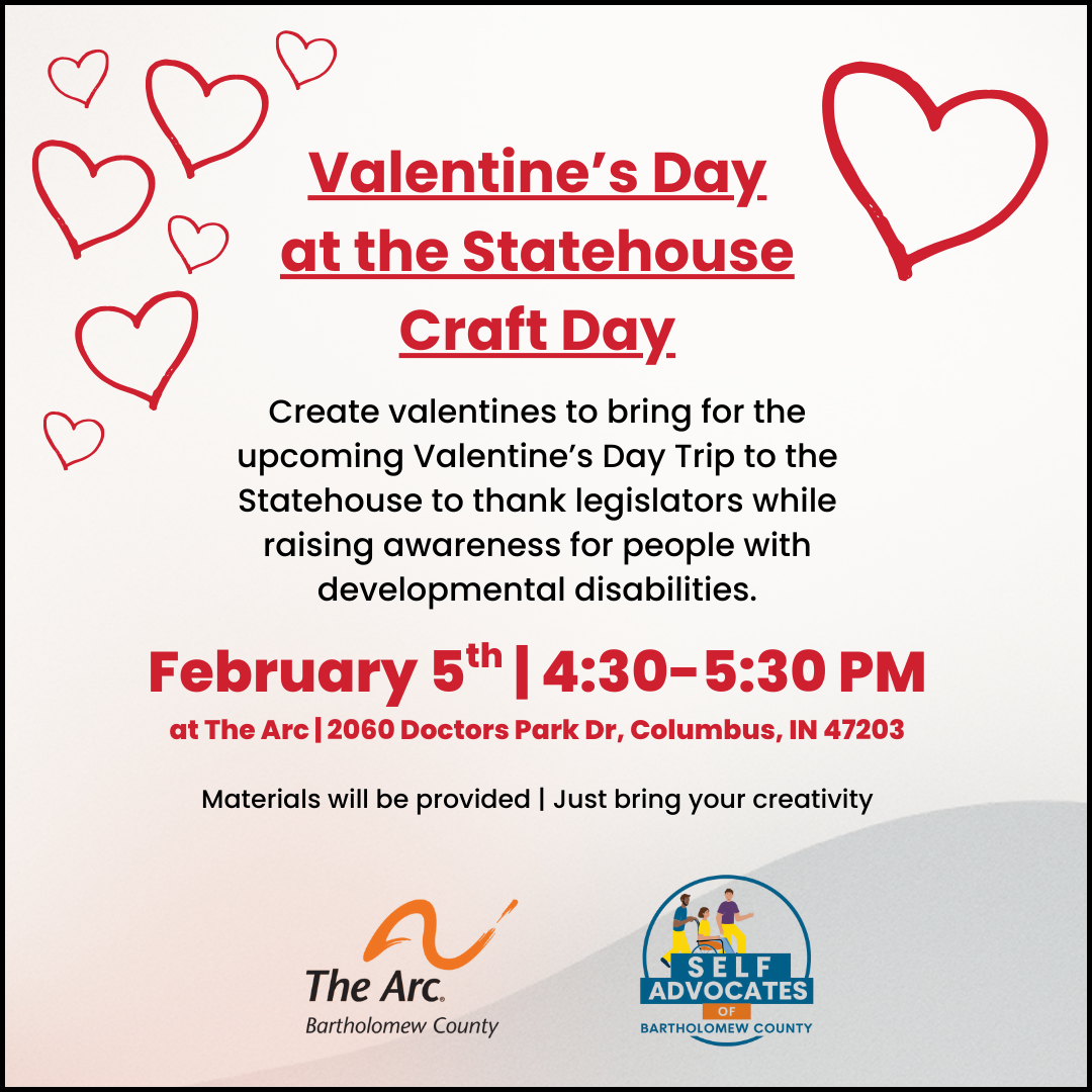 Join us for a fun and meaningful craft night as we create Valentines to take on our upcoming Valentine’s Day trip to the Statehouse.